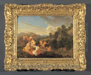 A Wooded Landscape With Satyrs And A Nymph Playing Music