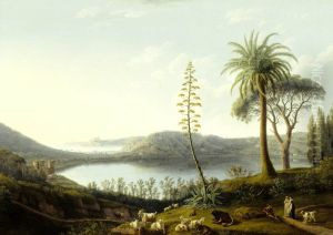 A Southern Landscape With Two Figures Bathing Near Ruins