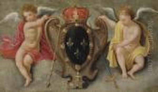 Two Putti Carrying The Royal Coat-of-arms Of France