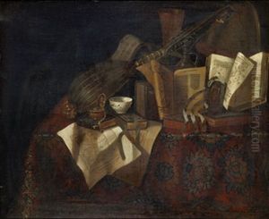 A Vanitas Still Life With A Skull And An Ecorche, On A Draped Table