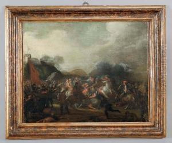 "combattimento Di Cavalleria" Olio Cm. 59,5x49