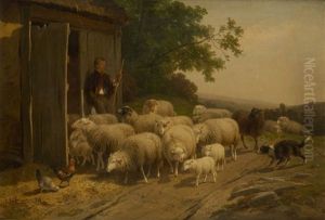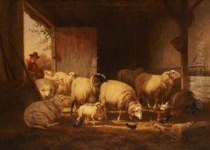 A Shephard And His Stock In A Barnyard