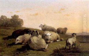 A Maiden Resting With Her Dog, Sheep And Chickens