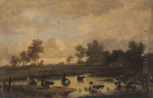 Chickens And Ducks In A Landscape (+ Another; Pair)