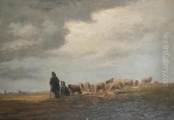 A Shepherd And His Flock In An Openlandscape