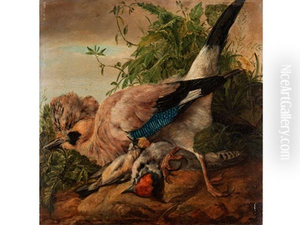 Stillleben Mit Eichelhaher Und Finken