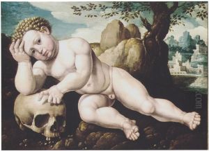 Een naakt jongetje met een schedel: Nascentes morimur, ca. 1540