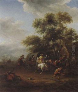 Travellers Resting Outside An Inn, A Boy Tending The Carthorses