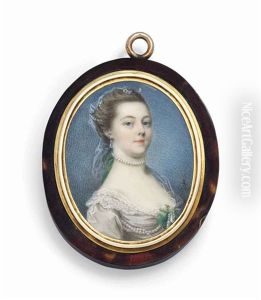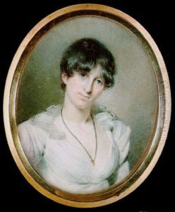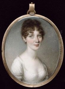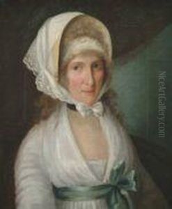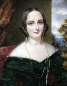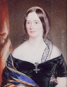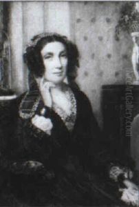 Portrait Of A Lady In Blue Satin Shawl And White Dress