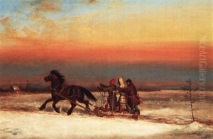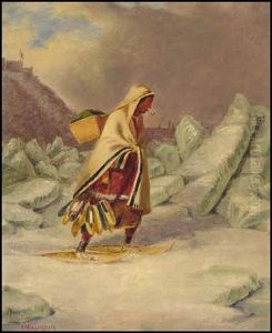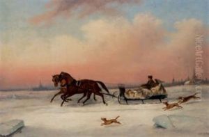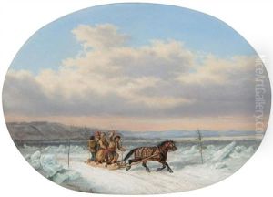 French Canadians Crossing The Frozen St. Lawrence, A View Of The Citadel In The Distance