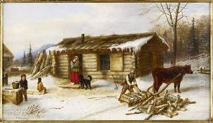 Return From Market; French Canadians, Loghouse And Clearing On The St. Maurice