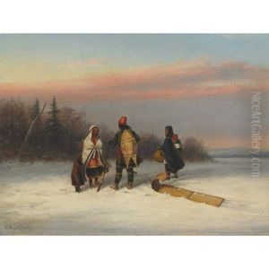 Indian Hunters In A Winter Landscape