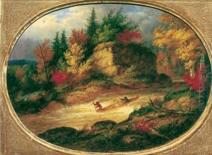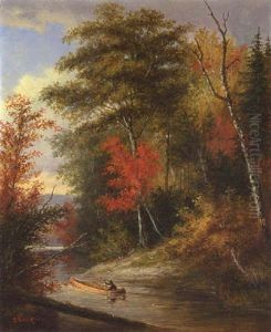 Indian Launching His Canoe, Lake Memphramagog, Autumn
