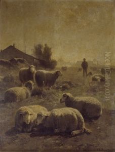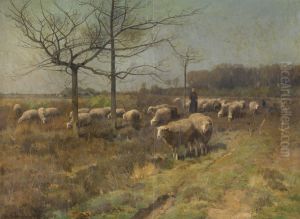 Landschap met herder en kudde schapen