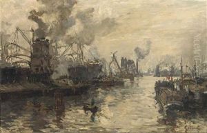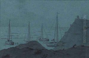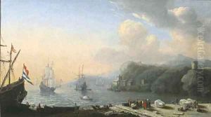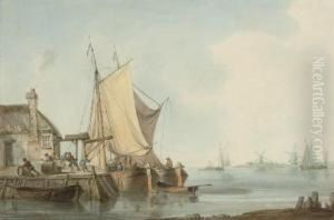 Coastal Landscape With Shipping And Men Loading Barrels
