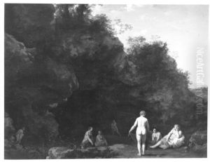 Landschaft bei Albano mit badenden Madchen (Im Hintergrund das Grabmal der Horatier und Curatier)
