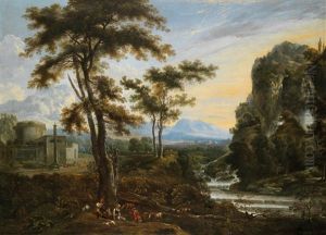 Landschaft bei Albano mit badenden Madchen (Im Hintergrund das Grabmal der Horatier und Curatier)