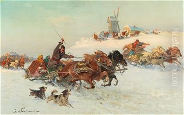 Bring the timeless beauty of Czeslaw Wasilewski's Wild Sleigh Ride into your home with a handmade oil painting reproduction. Carefully recreated on canvas by skilled artists using traditional techniques, this piece captures the delicate brushwork, subtle light, and vibrant color of the original masterpiece. With museum-level quality and rich texture, it brings elegance and artistic depth to any space. Enjoy free shipping and make this masterpiece a part of your personal collection.