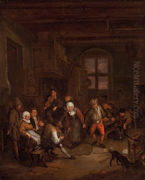 Interieur Mit Tanzendem Bauernpaar, Violinspieler Und Weiteren Personen