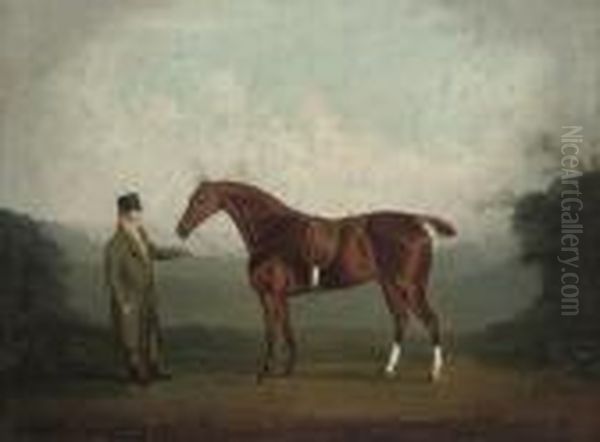A Bay Hunter Held By A Gentleman In A Landscape