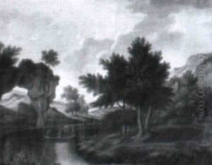 River Landscape With Figures In A Boat And A Weir