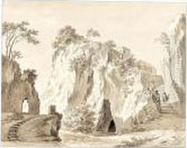 Rocky Landscape Near Sorrento, With Figures On Steps