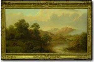 Swans On A River Before A Thatched Cottage