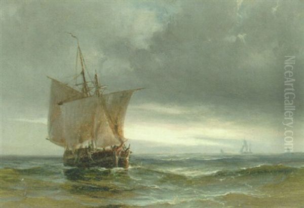 Marine Med Sejlskibe Oil Painting by Daniel Hermann Anton Melbye