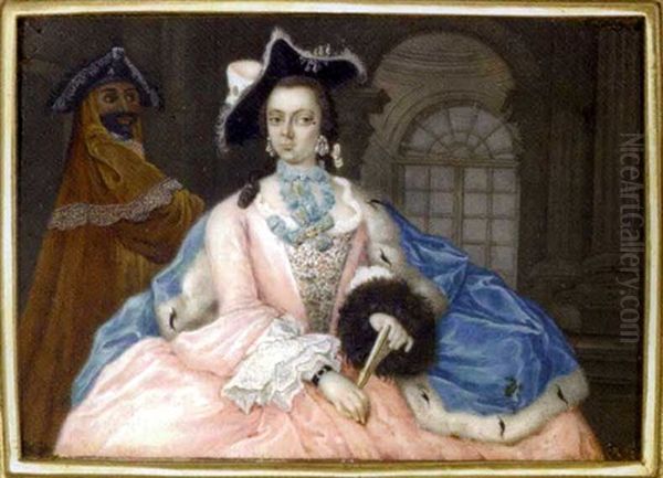 A Young Noblewoman Seated In An Interior Holding A Fan, A Bearded Servant Standing Beside Her, The Lady In Pink Silk Dress With Silver-embroidered Bodice And Lace Cuffs...