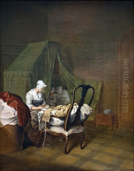 Childbed Oil Painting by Daniel Nikolaus Chodowiecki