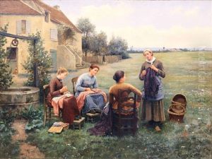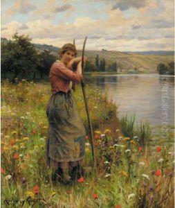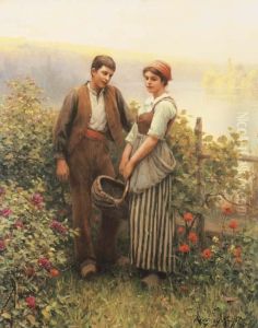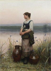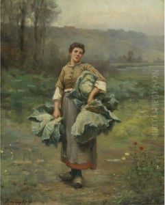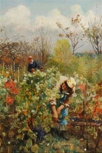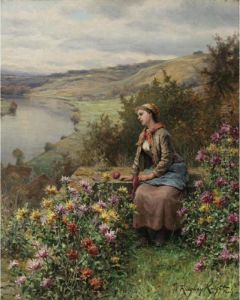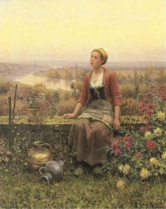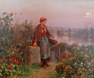 After The Day's Chores/a Young Woman Leaning Against The Garden Wall