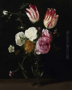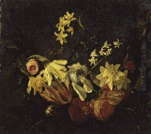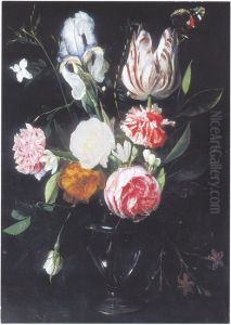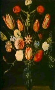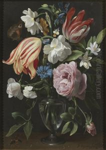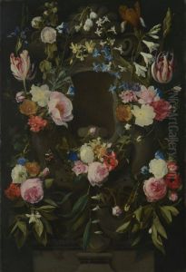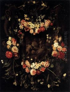 A Stone Cartouche Surrounded By Garlands Of Roses, Tulips, Narcissi And Other Flowers And Butterflies With The Madonna And Child (collab W/cornelis Schut)