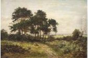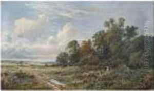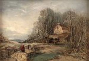 A Country Lane With Farmer Droving Sheep And Figures Resting By The Wayside, And Another Similar