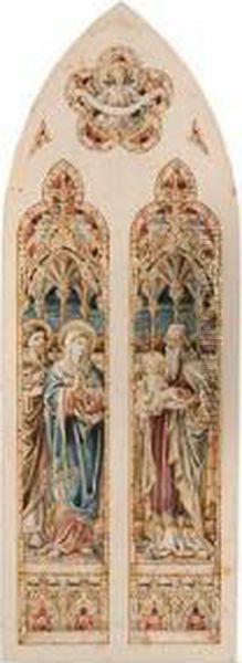 Design For Stained Glass Windows With The Holy Family And St.john The Baptist