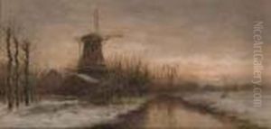 Snowy Landscape With Figures And Windmills
