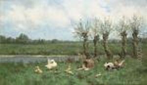 Ducks In A Sunlit Meadow