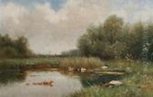 Landscape With Ducks In A Pond