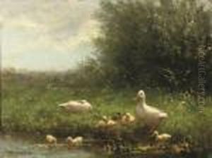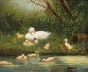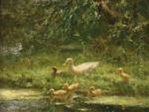 Ducklings On A Riverbank