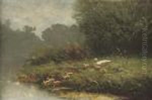 Ducks On A Sunlit River Bank