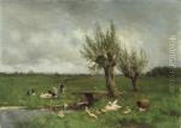 Ducks On The Waterfront Oil Painting by David Adolf Constant Artz
