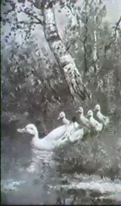 Ducks By A River Bank