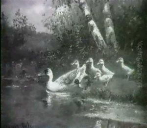 A River Landscape With Ducks And Ducklings
