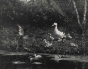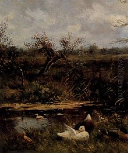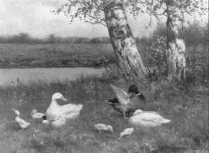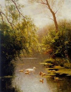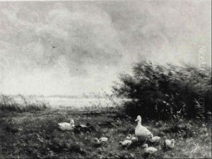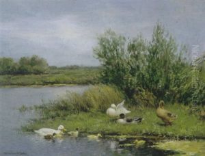A River Landscape With Ducks And Ducklings