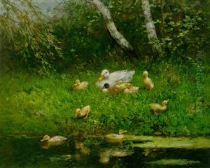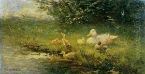 Ducklings On A Sunlit Riverbank