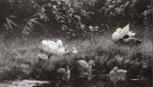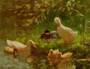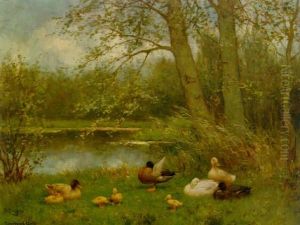 Ducks By A River Bank