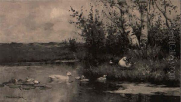 A River Landscape With Ducks And Ducklings