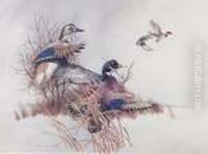 Duck With Ducklings In A Landscape
