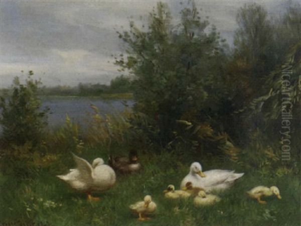 Ducks By The Waterside Oil Painting by David Adolph Constant Artz