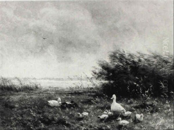 Ducks With Ducklings Oil Painting by David Adolph Constant Artz