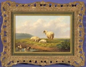 Ducks With Their Ducklings Near The Waterfront Oil Painting by David Adolph Constant Artz